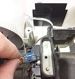 Very carefully remove the colour wheel connector cable. Colour wheels are very delicate and can be easily broken.