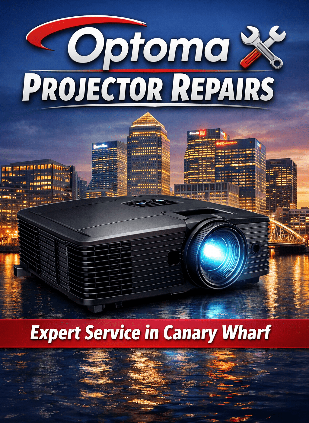 We are a specialised repair centre based in Canary Wharf since 2003. A support for local businesses corporate clients and end users, repairing projectors in some instances while you wait. Our friendly and highly skilled staff will take care of your projector when you visit us. We are part of the thriving business community located in the heart of docklands.